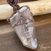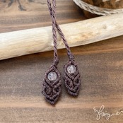 魅力的なピンクリチウムクォーツのマクラメネックレス。